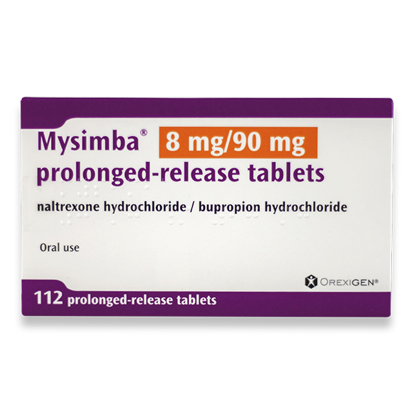 Mysimba is a prescription medication sold by our registered pharmacy merchants. Its active ingredients reduce appetite and make exercise more effective, helping adults who have a BMI of 30 or above to reach a healthy BMI. The oral tablets are also prescribed to adults with a BMI of 27 or more who have health complications that are made worse by their weight.